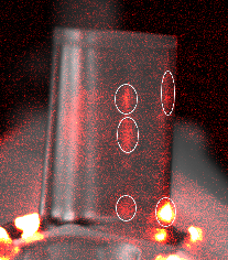 NDE inspection results with possible indications circled, as might be reviewed by an NDE engineer